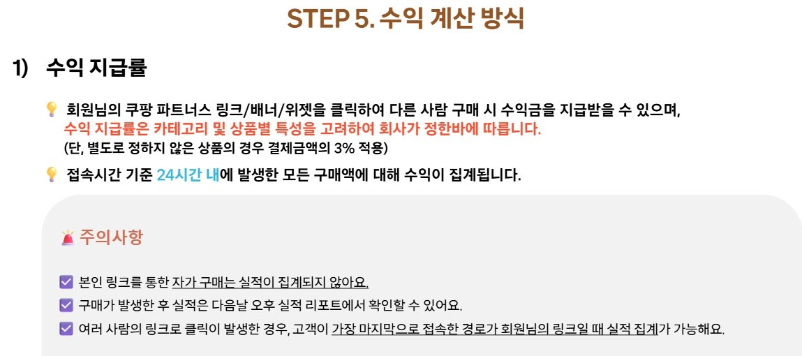 쿠팡 파트너스 수익계산 방식. 유튜브 쿠팡 제휴 프로그램은 쿠팡 파트너스(기준 수수료 3%)보다 높은 6%대 수수료를 지급한다. ⓒ쿠팡파트너스