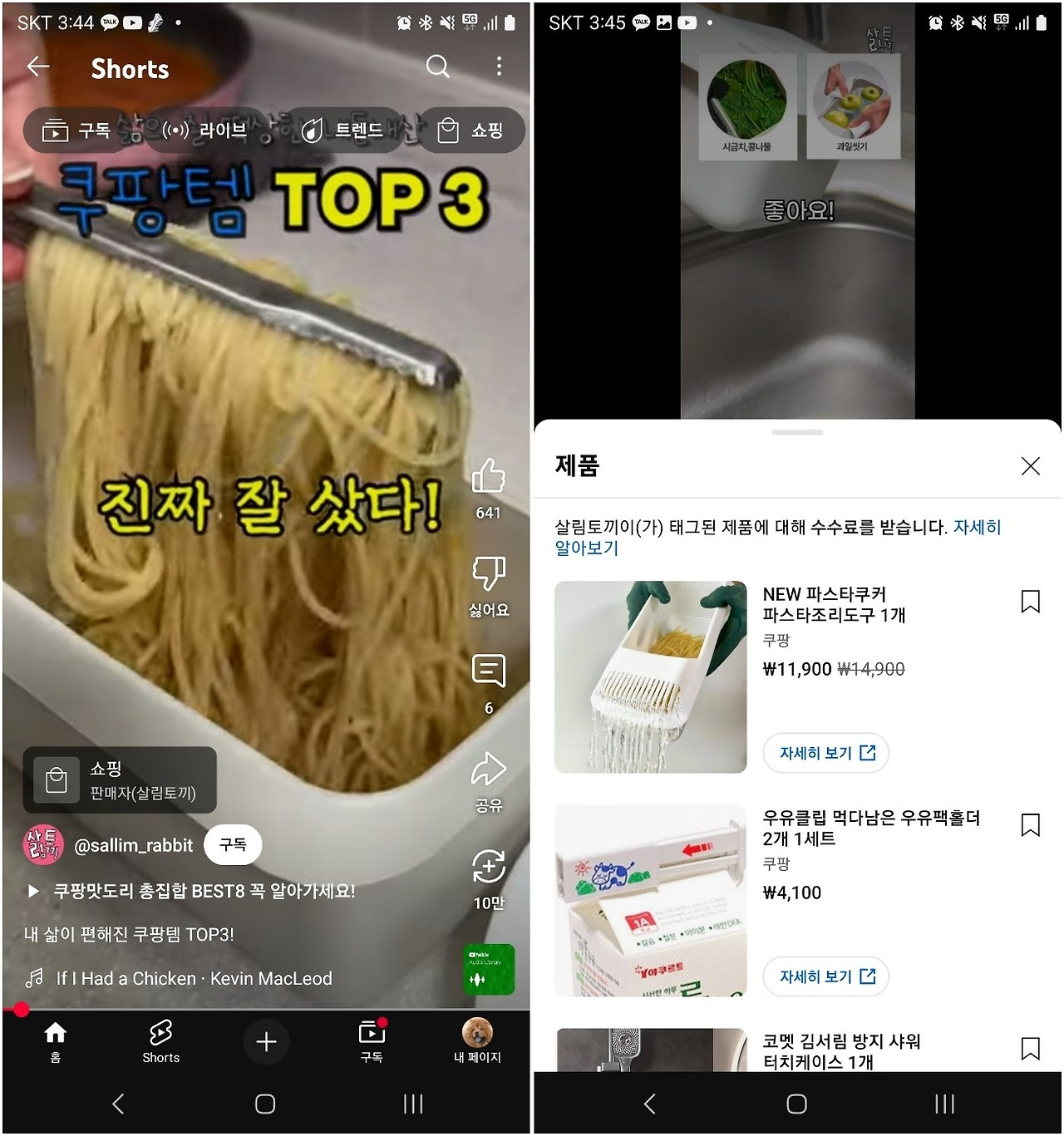 유튜브 숏폼 영상내 노출되는 쿠팡 상품 태그. A씨와 무관한 채널이다. ⓒ유튜브 캡처