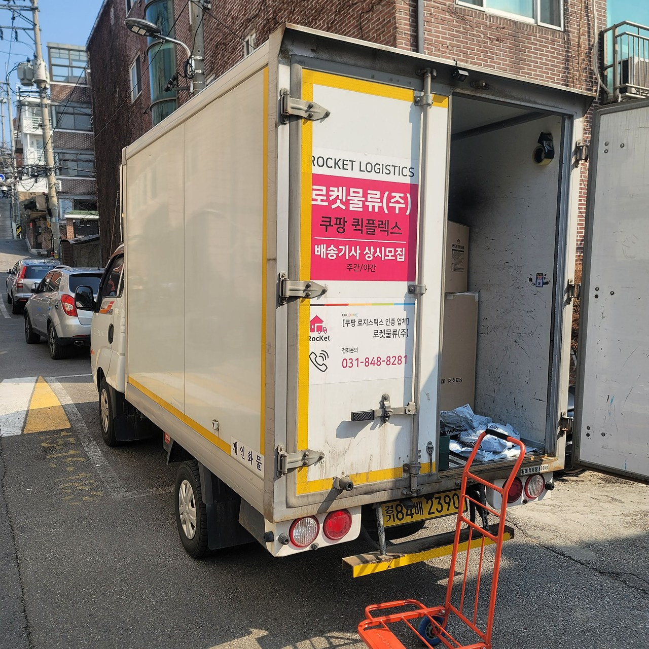 한 쿠팡 퀵플렉스 택배차량에 부피가 큰 화물이 들어찬 모습 ⓒ커넥터스